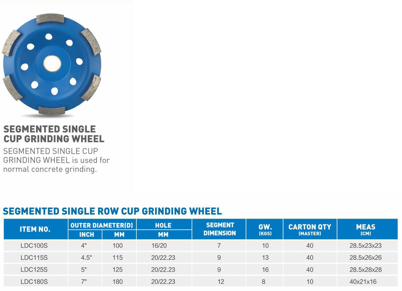 ITEM NO.: Segmented Single Cup Grinding Wheel